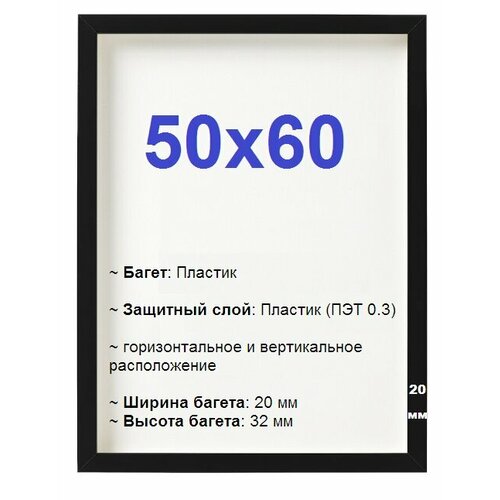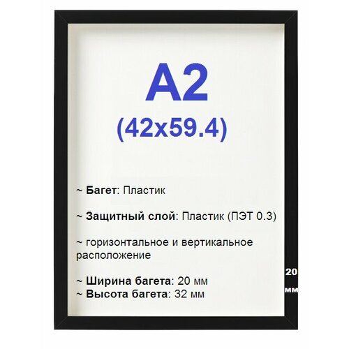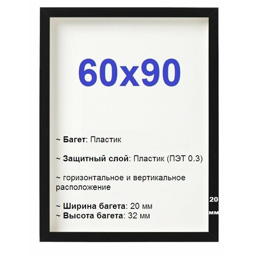 Рамка из пластикового багета в комплекте: пластиковое стекло, задник, фурнитура.