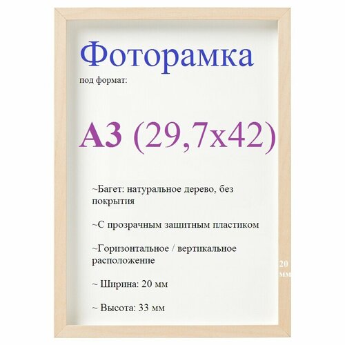 Рамка для фото 29.7х42 а3, фоторамка багетная. "Light frame". Профиль 2416. Сращенная сосна, неокрашенная.