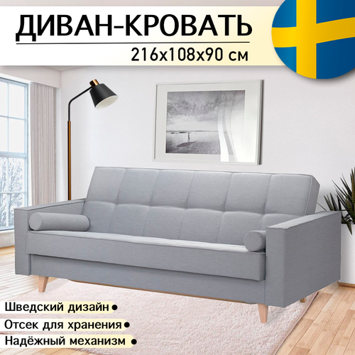 Диван-кровать 3х-местный джой, 216х108х90 см, светло-серый