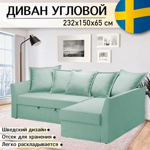 Диван угловой джаспер 232х150х65 см, светло-зеленый