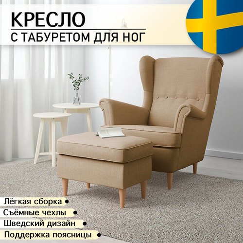 Кресло с табуретом для ног джеймс бежевое
