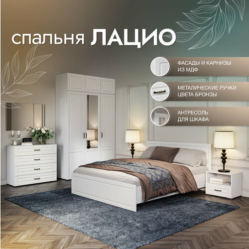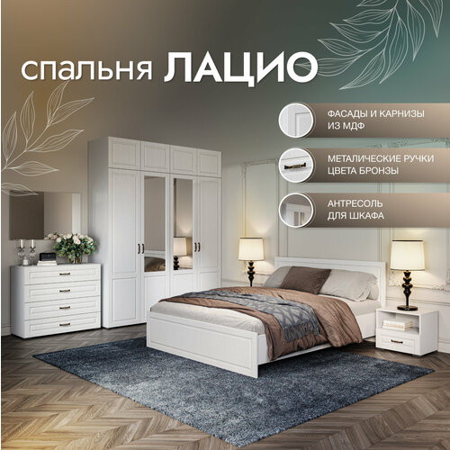 Спальный гарнитур Лацио шкаф 4 дв антресоль с белым корпусом и бронзовыми ручками, современный стиль