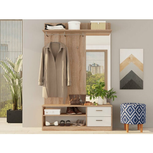 Модульная гостиная "Бери Комп.2", дуб крафт золотой/белое дерево