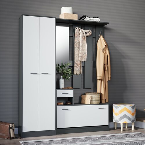 Прихожая Интер со шкафом, тумбой, вешалкой Антрацит/белый