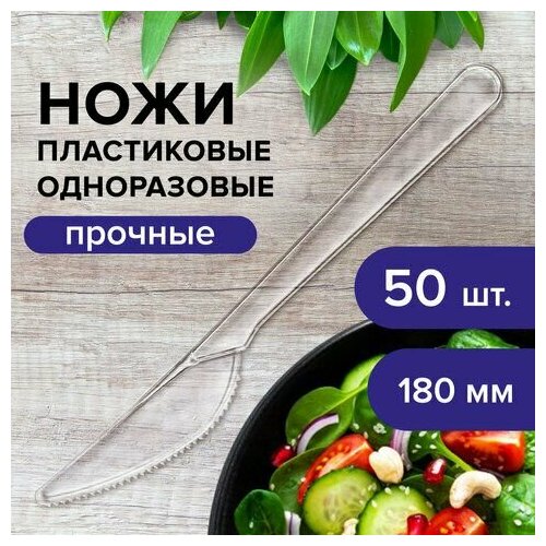 Нож одноразовый пластиковый 180 мм, прозрачный, комплект 50 шт, эталон, белый аист, 607843