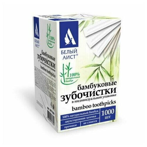 Зубочистки бамбуковые 1000 штук в индивидуальной упаковке, белый аист, 607568