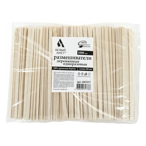 Размешиватель одноразовый 180мм Белый Аист, деревянный, 1000шт, 2 уп. (607577)