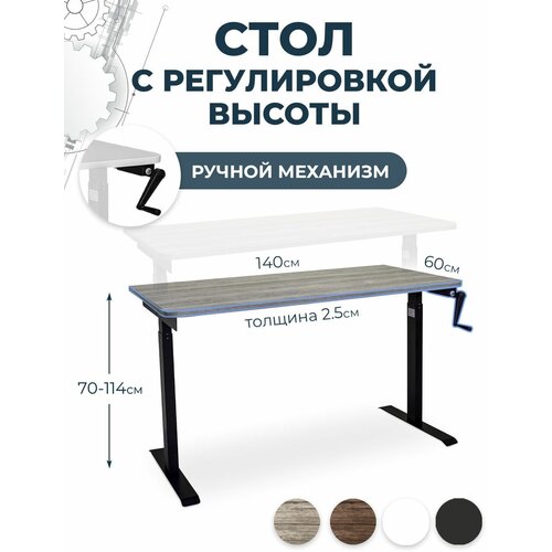Стол с ручным подъемным механизмом LuxAlto, белая столешница ЛДСП 140x60x2,5 см, черное подстолье М1
