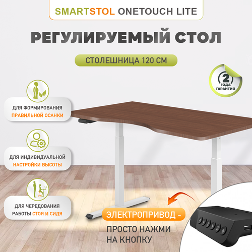 Регулируемый стол Smartstol OneTouch Lite с электроприводом, столешница Орех Линкольн 120
