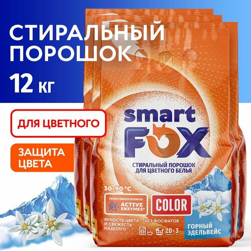 Спайка- Порошок для стирки автомат SMART FOX COLOR Горный эдельвейс 3кг 4 шт.