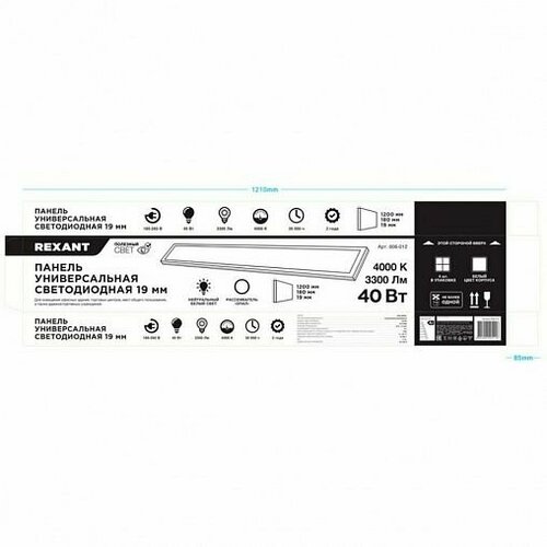 Панель светодиодная Rexant Опал, 40 Вт, 6500 К, 1200 x 180 x 19 мм