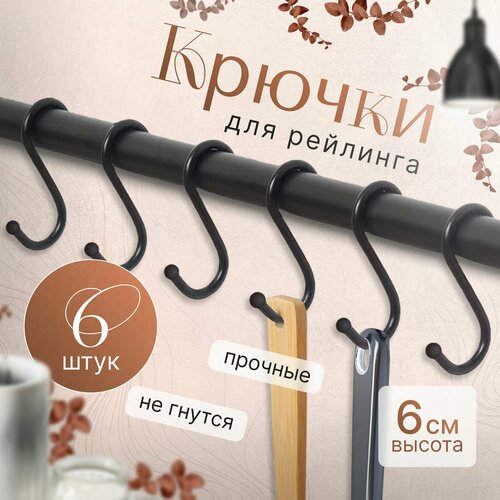 Набор крючков "MOVEIS" для рейлинга с шариками, высота 6 см х Цвет чёрный х 6 шт