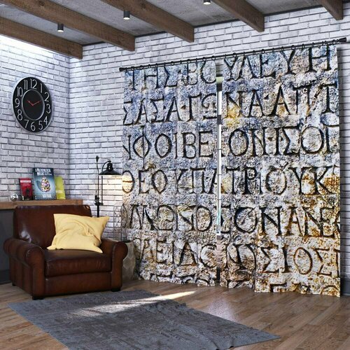 Фотошторы Греческая надпись Ш150xВ240 см. 2шт. Габардин на тесьме