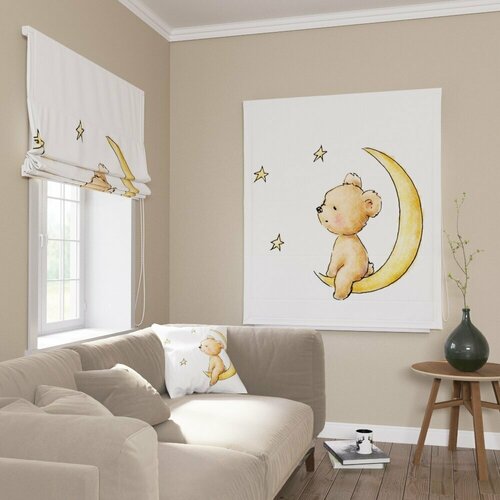 бежевый, молочныйРимская штора из блэкаута идеально подойдёт для детской. Высота полотна 170 см., ширина 150 см. Изображение плюшевого мишки, спящего на месяце