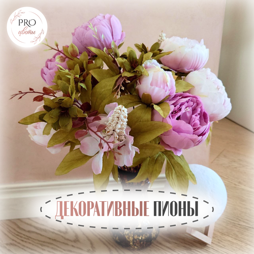 Пионы искусственные/ Пионы для декора/ Пион Прелесть розовидный куст/ PRO цветы плюс
