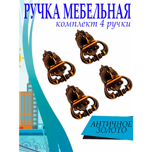 Ручка мебельная, комплект 4 шт, цвет античное золото, арт. UV442624