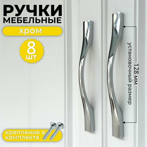 Ручка мебельная скоба, 128мм/163мм, цвет хром, комплект 8 шт