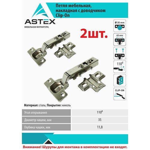 Петля мебельная накладная Firmax Click-on Soft-Close с доводчиком и крепежной фурнитурой, 155 , 2 шт