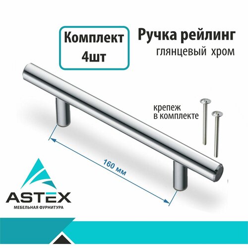 Ручка мебельная скоба, 128мм/163мм, цвет хром матовый, комплект 4 шт