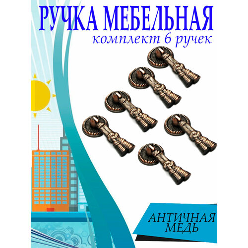 Ручка мебельная, комплект 6 шт, цвет медь, арт. SV6033046