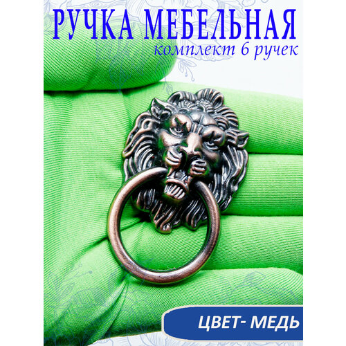 Ручка мебельная с кольцом Лев, цвет медь, 6,7 х 4,3 см. В комплекте 6 шт, арт. SV671037
