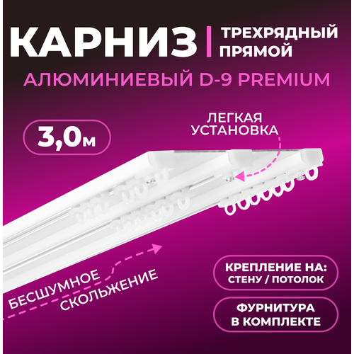 Карниз двухрядный алюминиевый LM DECOR D-9 Премиум 3,0 м Белый