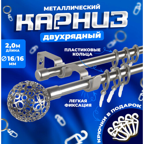 Карниз двухрядный металлический LM DECOR Лайт Ажур Ø16/16 мм сатин 2 м