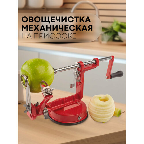 Механическая яблокочистка Apple Peeler Slicer на присоске (инструмент для очистки и спиральной нарезки яблок, овощей и фруктов), овощерезка-яблокорезка красная
