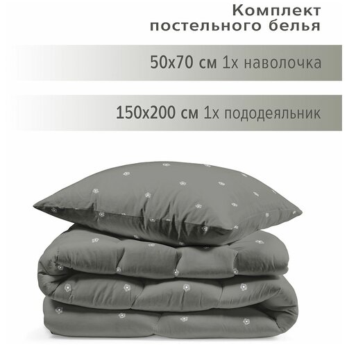Комплект постельного белья 1 спальный YERRNA, наволочка 50х70 1шт, перкаль, темно-серый, с2021шв/209862