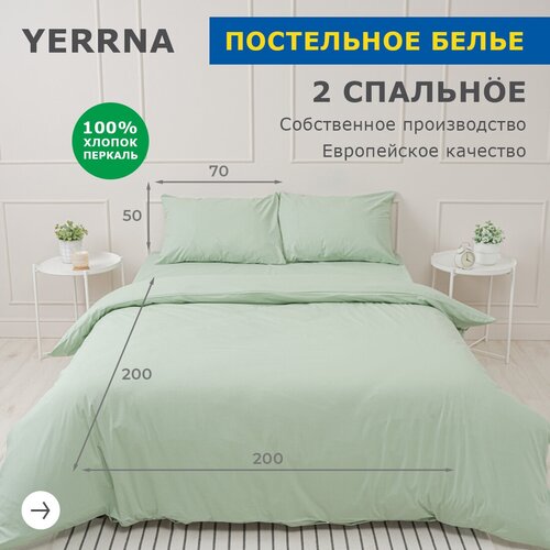 Комплект постельного белья YERRNA, 2-спальный 200x200, перкаль, морозно-зеленый