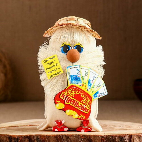 Оберег "Домовой в плетеной полушляпе с Кошельком", 19 см