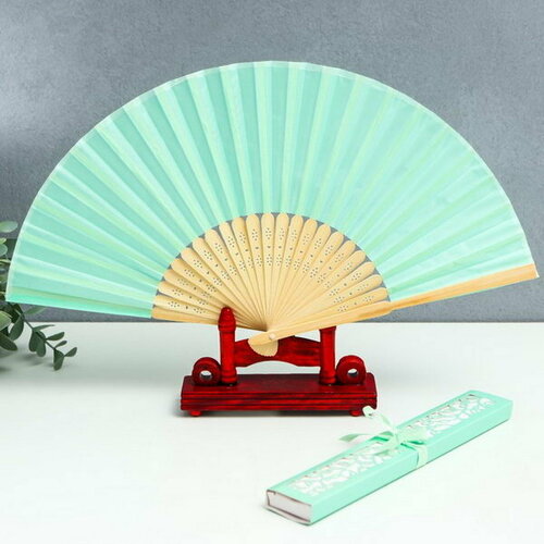 Веер бамбук, текстиль h=21 см "Моноцвет" в коробке, мятный