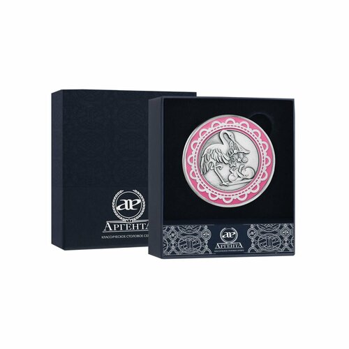 Медаль "С рождением" с чернью с розовой эмалью Серебро 925 пробы