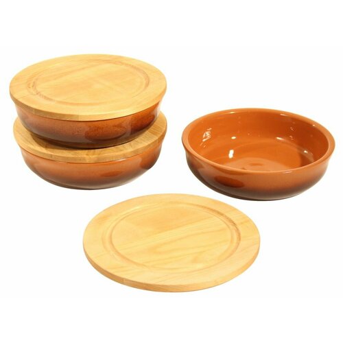 Вятская керамика Набор для холодца "Вятский №1" (1 емкость/1л. + 1 деревянная крышка)