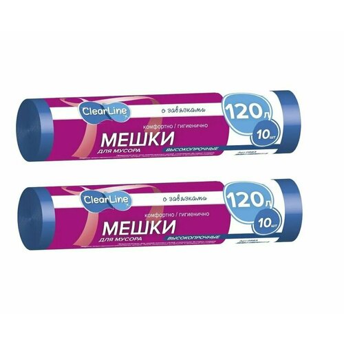 Clear Line Мешки для мусора с завязками особопрочные синие, 120л, 10 шт в упаковке, 2 уп