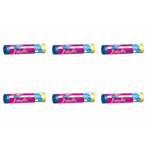 Clear Line Мешки для мусора, синие, с завязками, 60 л, 10 шт/уп, 6 уп