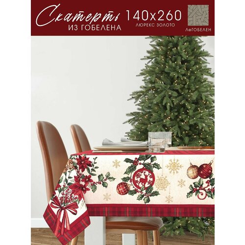 Скатерть Le Gobelin Рождественский венок клетка 140х260 см