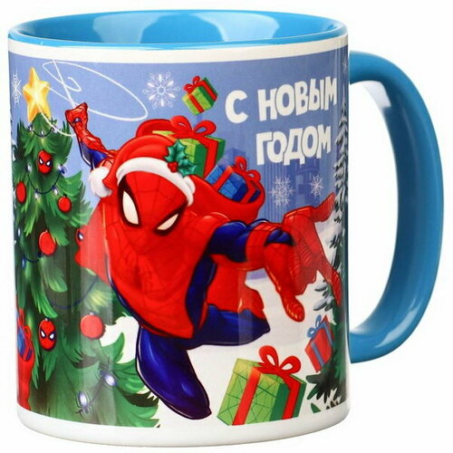Кружка керамическая "С Новым годом!" 350 мл, Человек-паук