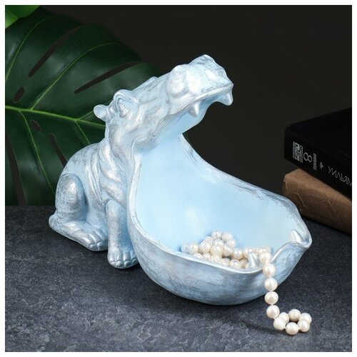 Подставка конфетница "Бегемот" голубое серебро, 22х30см