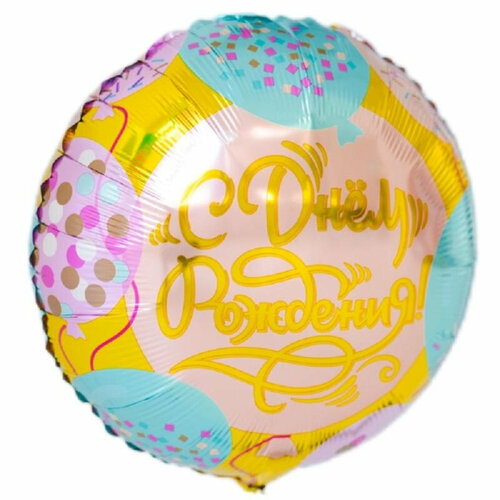 Шар воздушный Y Круг 05 С Днем Рождения Конфетти 18/45см, 6057336, 1 шт.