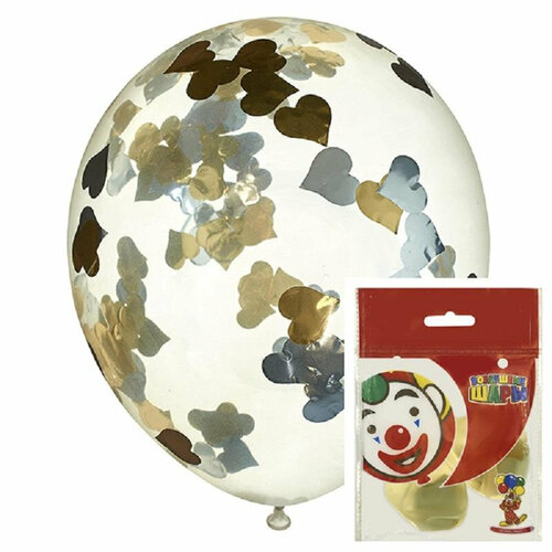 Набор шаров с наполн конф фольга зол/сер 2шт TRANSPARENT M CS 30см,6054052