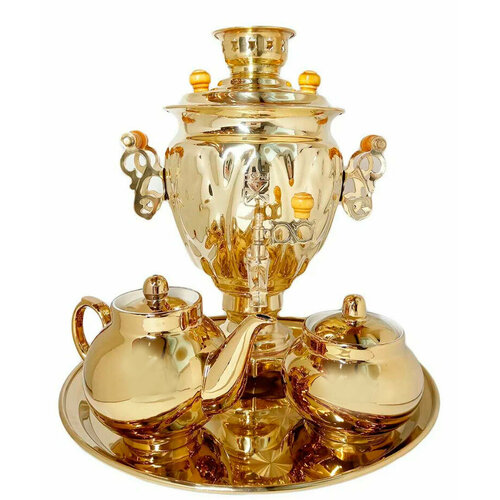 Набор самовар электрический 3 литра "Золото - латунь"