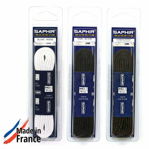 Шнурки Saphir (Сапфир) из 100% хлопка, в отличие от синтетических материалов, прекрасно держат узел. Для более длительного использо...