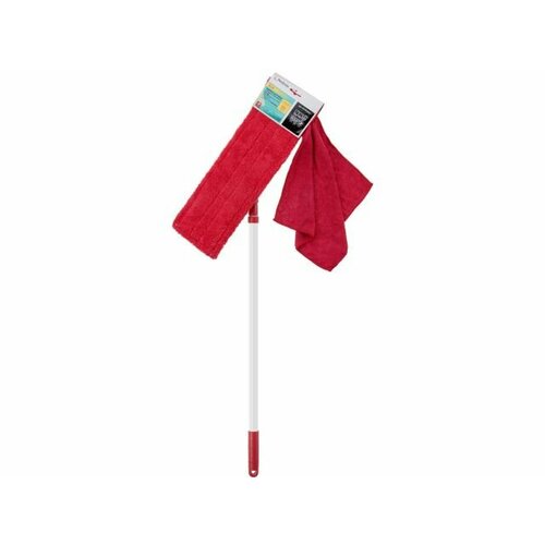 Швабра для пола с насадкой из микрофибры, бордовая + салфетка из микрофибры 30х30 см, PERFECTO LINEA (промо салфетка из микрофибры в подарок) (43-3920