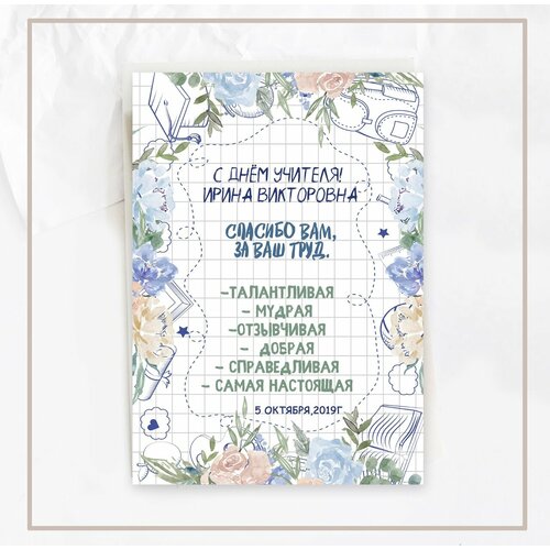 Индивидуальный постер учителю, день учителя, форма А4, заламинировано арт учт111