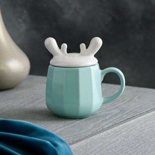 Кружка "Олень", с крышкой, голубая, 450 мл, 1 сорт, Иран