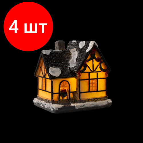 Комплект 4 штук, Сувенир Дом с еловой гирляндой, керамика, AG13х3, теп бел 5133376