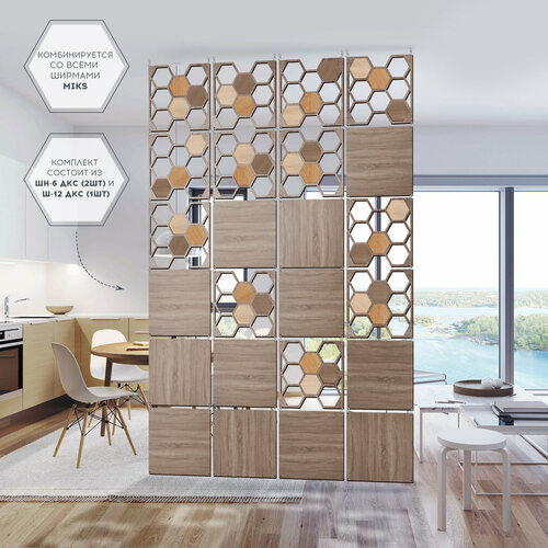 ШН-6-ДКС Дуб крафт Ширма-перегородка подвесная модульная MiKs для зонирования комнаты, салона красоты, офиса, кафе, дома, гостиной и детской, интерьерная