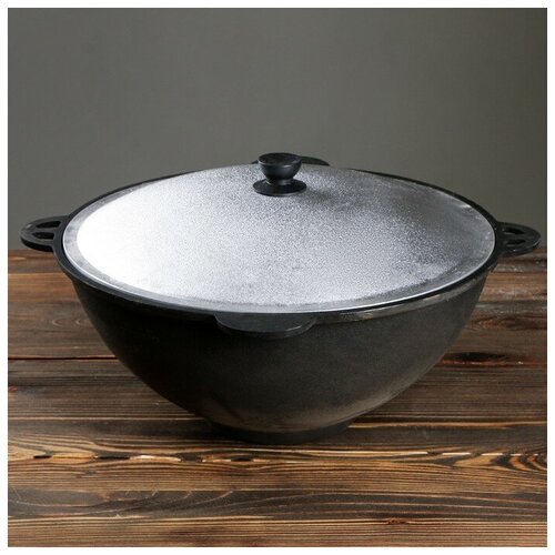 Казан чугунный, 12 л, плоское дно, алюминиевая крышка./В упаковке шт: 1