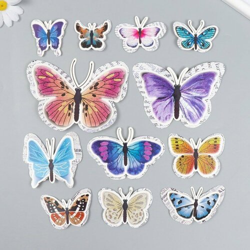 Бабочки картон двойные крылья "Газетные" набор 12 шт h=4-10 см на магните